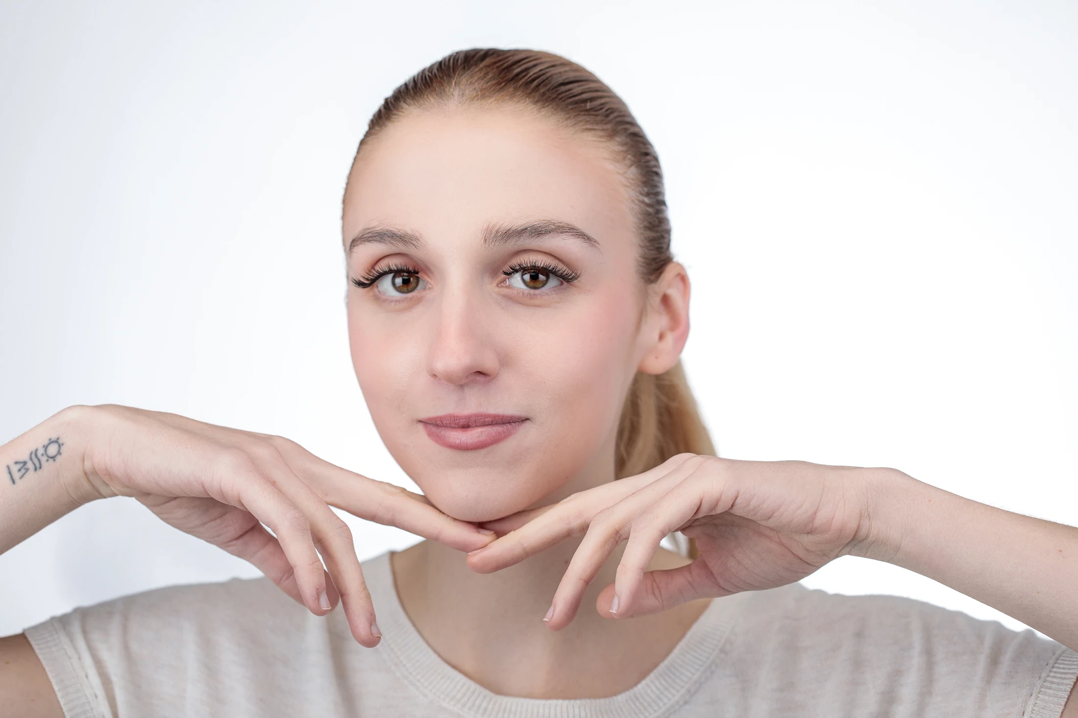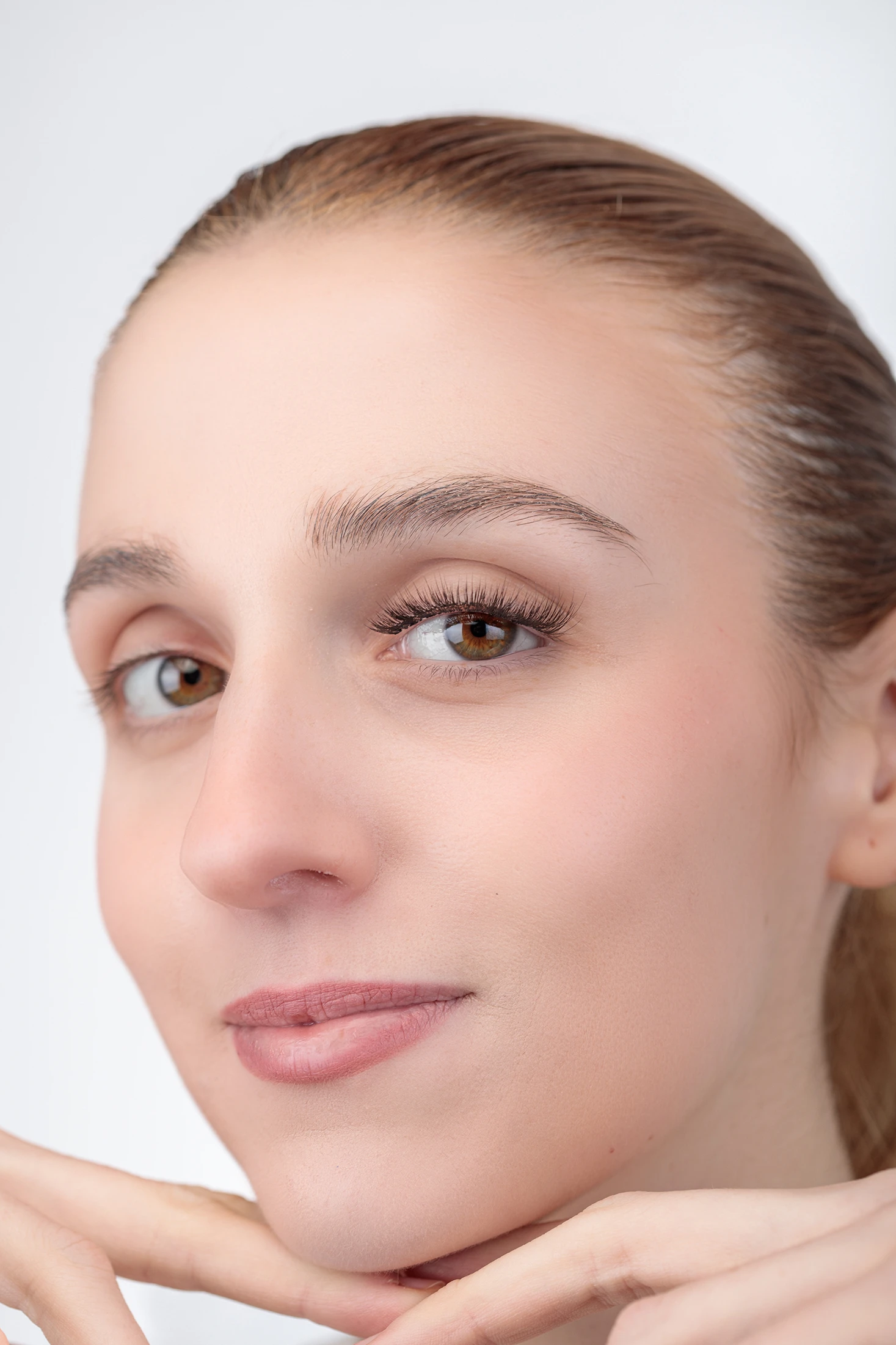 Sitúa el aplicador Moonbliss sobre la raíz de tus pestañas naturales y presiona con firmeza y suavidad hasta que los imanes se unan.