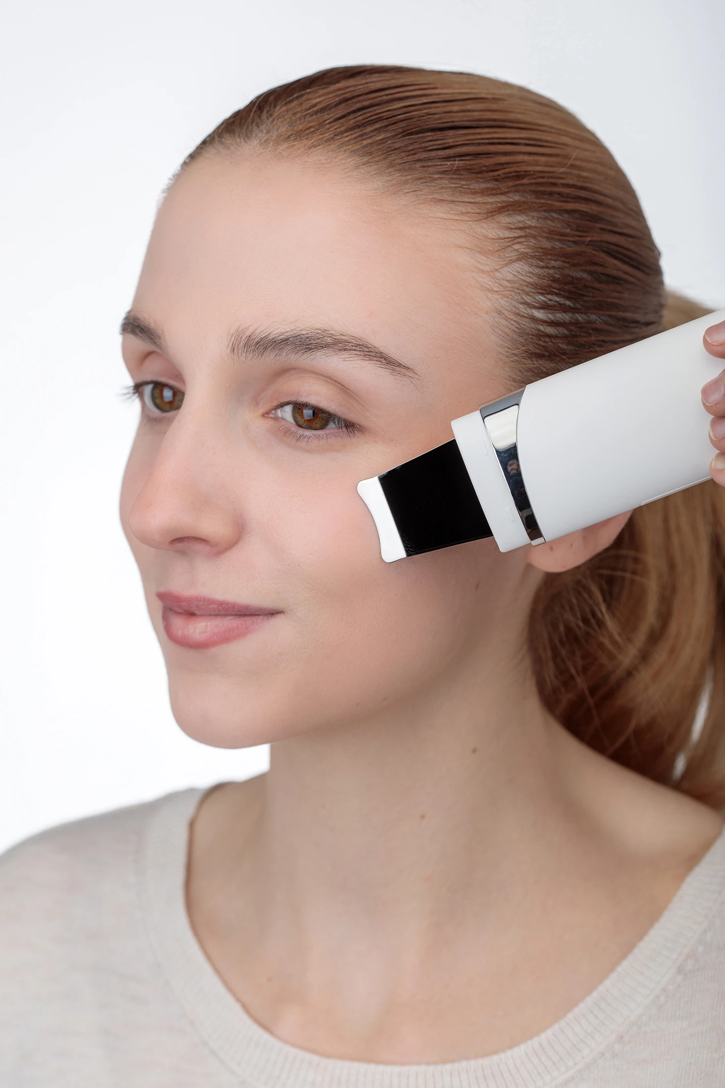 Pore Clean: dispositivo de peeling con tecnología ultrasónica que limpia profundamente los poros, eliminando impurezas, exceso de grasa y células muertas de forma suave y segura.